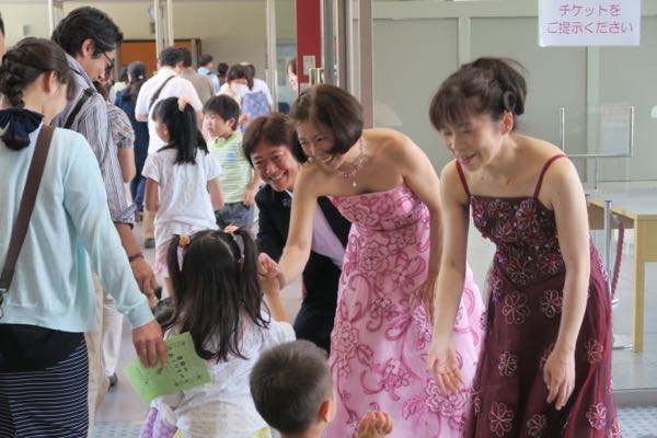 茨城県常陸大宮市文化センター・ロゼホールにて「音楽のおくりもの」の公演がありました。平成28年度初の文化会館での公演です。当日は地域のイベントと重なってしまったのですが、たくさんのご家族のみなさんがいらしてくださいました。特に今回は親子三代でいらしていただく方々が多いように感じました。小さなお友達がティアラを付けたり、おそろいのお洋服を着てきたりと、少しおめかししてニコニコしながら家族で手をつないで来られる姿に、こちらも笑顔になりました。ロゼホールさんはとても響きのいい素敵なホールでした。演奏家もリハーサルから本番まで笑顔の絶えない公演になり、お客様も赤ちゃんからおじいちゃんおばあちゃんまで一緒に手拍子をしたり、参加コーナーの「イントロクイズ」では会場に響くぐらい大きな声で「ハイッ!」と手を上げてくれたり、ゆったりしながらも積極的にコンサートにご参加いただき、感謝しております。お昼休みには会館の皆さんが常陸大宮産の野菜をサラダバーで出してくださいました。みずみずしく新鮮なお野菜に一同感動し、もりもり美味しくいただきました。温かなお心遣いをありがとうございました。「音楽のおくりもの」は25周年を迎え、これからも全国各地のたくさんのご家族に「クラシックは楽しいんだ!コンサートは身近なものなんだ!」と感じていただけるよう、楽しいファミリーコンサートをお届けしていきたいと思います。