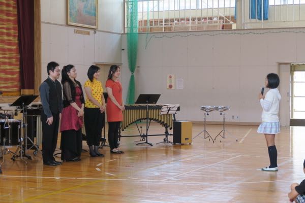 福島県いわき市立郷ヶ丘小学校にて、「ビバ!パーカション」の公演がありました。低学年・高学年2回公演で、学校からのご希望で80分公演でお届けしました。 「ビバ!パーカッション」は、マリンバやヴィブラフォン、スネアドラムを中心とし、様々な打楽器が登場します。打楽器にピアノ加え、楽器の仕組みや音の違いなどを楽器紹介を交えながら演奏しました。 打楽器の迫力が伝わる「パーカッションシークエンス」。ヴィブラフォンの素敵な音色を感じられる「虹の彼方へ」など魅力溢れる曲目とともに、「熊蜂の飛行」では、カエルの鳴き声の音がする「マンドゥック」を児童のみなさまに配り、演奏に参加するという機会もありました。 「ビバ!パーカッション」の魅力の参加コーナーも盛りだくさん!今回は、リズム遊びやボディ・パーカッション、そしてみんなで歌いましょうを行いました。 リズム遊びでは、低学年は「小象の行進」高学年は「イパネマの娘」の音楽を用いて行いました。やさしいリズムから難易度が高いリズムまで挑戦しましたが、両学年ともにリズムを覚えるのが非常に早く、すぐにリズムをとっていました。 ボディ・パーカッションでは、鑑賞会一番の盛り上がりを見せていました。1年生から6年生さらに先生方まで恥ずかしがることもなく、楽しんでおりました。 みんなで歌いましょうでは、低学年は「さんぽ」高学年は「ビリーブ」を歌いました。 参加コーナーでは、たくさんの児童のみなさまの笑顔が見られました。演奏家と児童のみなさまが一緒に創りあげる参加コーナーは思い出に残るのではないかと思っております。 最後には、感想をいただきました。低学年は、感想を述べたい児童が挙手する形でしたが、ほとんどの児童が手を挙げ、「楽しかった」や「素早い動きがすごかった」など述べておりました。高学年は、代表の児童が「もともと好きだった音楽がもっと好きになった」と大変嬉しい言葉を述べていただきました。 郷ヶ丘小学校では、小学4年生になるといわき市で行われる音楽祭に出演するそうです。そのため、音楽に触れあう機会が多いと伺いました。これからも新たな魅力の発見や気づきを通して、 音楽をもっと好きになると幸いです。郷ヶ丘小学校のみなさまありがとうございました。